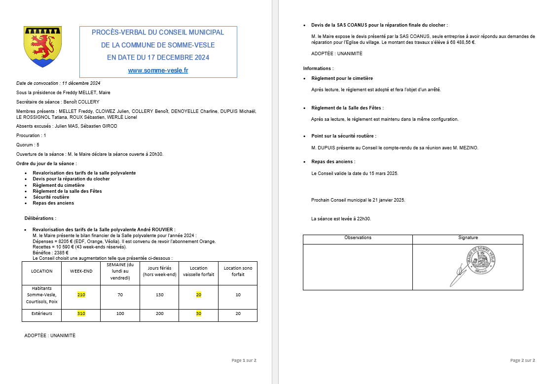 - Compte-rendu du 17 décembre 2024
